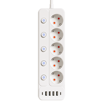 Avrupa çoklu cihaz uzatma soketi 5 prizli güç kablosu 2500W 4 USB 2 tip C bağımsız anahtar güvenlik sistemi ile dayanıklı